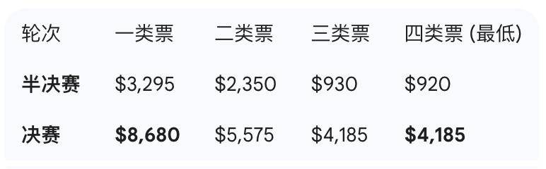 这一涨幅令人咋舌。仅仅在两个月前,决赛的最低门票报价还维持在2030美元左右。这意味着在动态定价机制的推动下,决赛入场门槛在短时间内翻了一番。