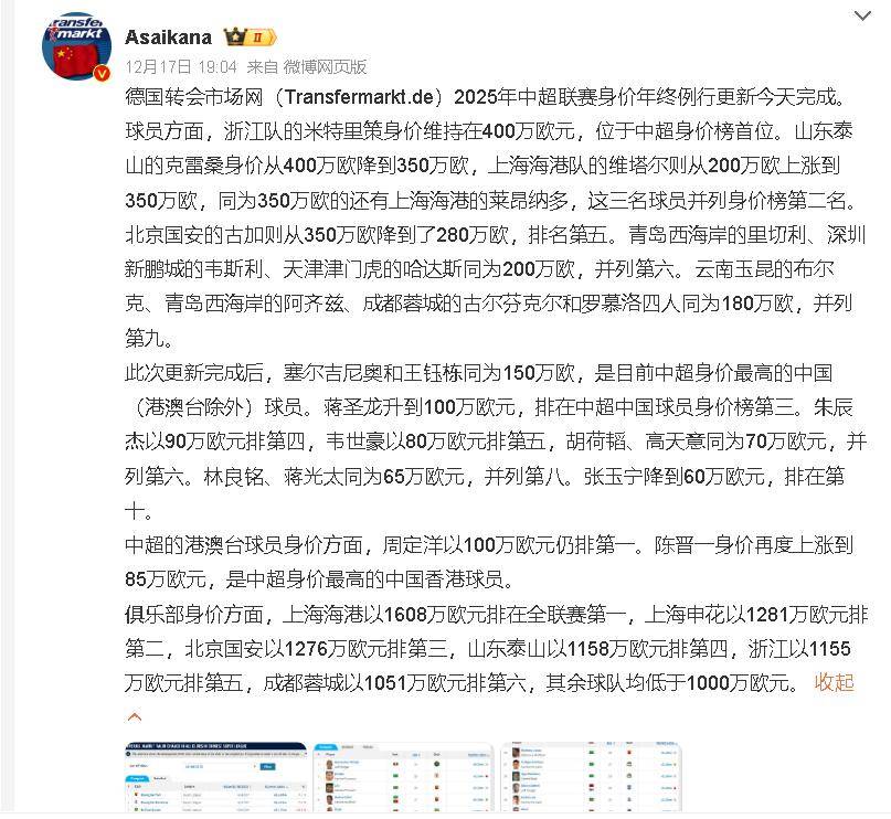 足球直播,直播吧,NBA直播,欧洲杯直播,英超直播,世界杯直播,篮球直播,电竞直播,足球比分,体育直播,意甲,欧冠,世界杯,欧洲杯,lol直播,英雄联盟,cf直播,绝地求生,王者荣耀,游戏直播近日,德国转会市场更新了中超球员身价榜,瞬间引发热议。浙江队外援米特里策依旧以400万欧元的身价稳居榜首,彰显着他在中超赛场上的统治力。然而,本土球员的身价变动却让人心情复杂,既有惊喜,也有隐忧。